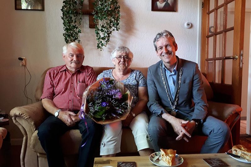 Verder lezenRhenen – Het Rhenens echtpaar Wijnberger viert vandaag haar 55-jarig huwelijk. Burgemeester Hans van der Pas kwam langs met bloemen