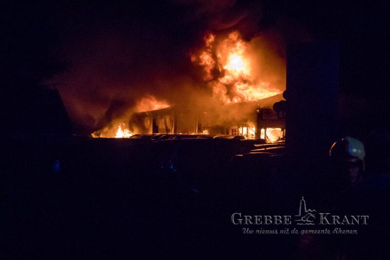 Rhenen – woensdagnacht net na middernacht is er een grote brand uitgebroken bij een garagebedrijf aan de Boslandweg. Vanwege de