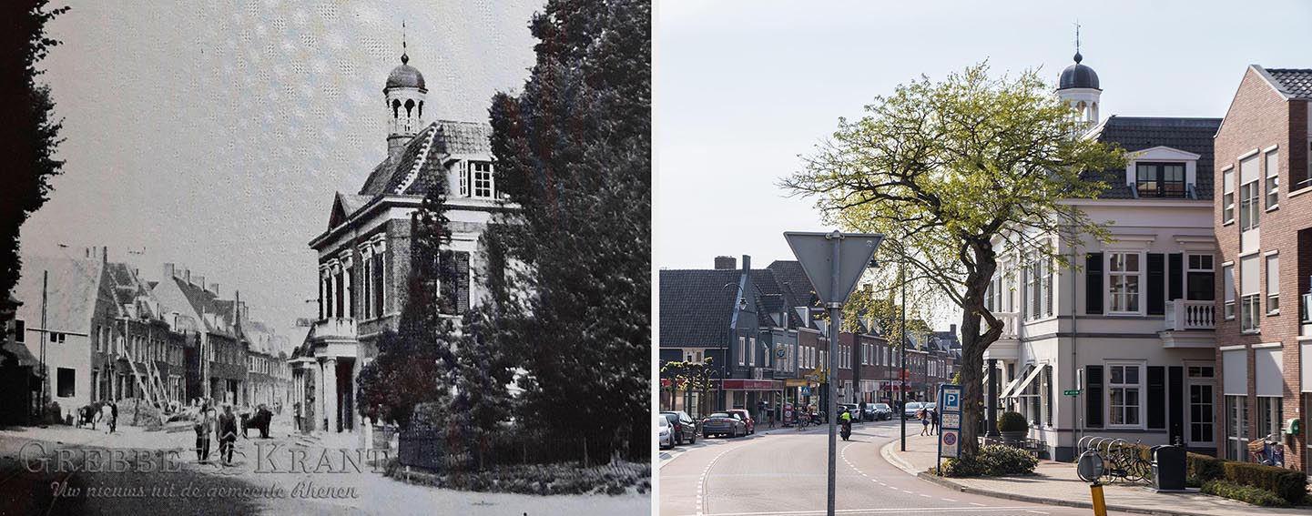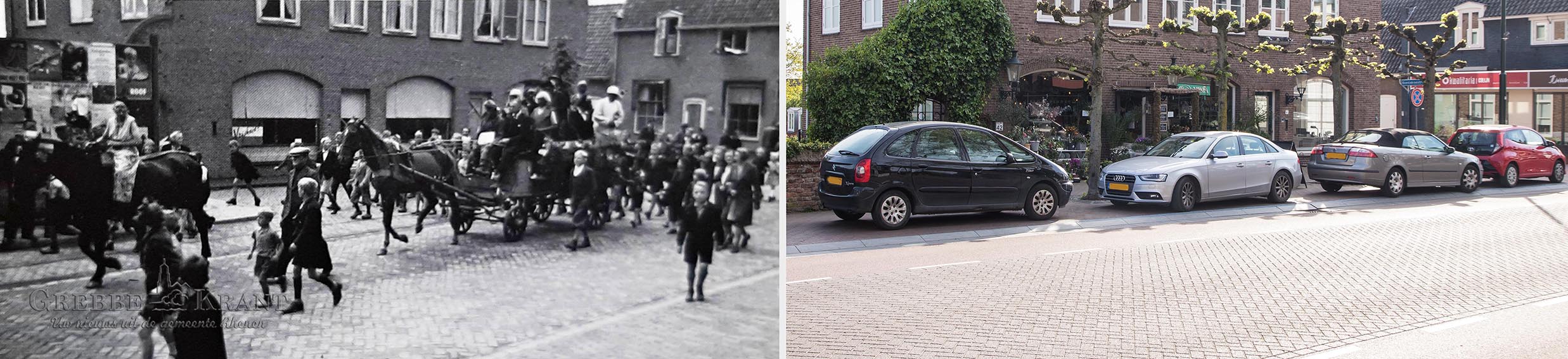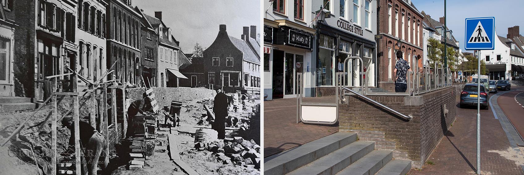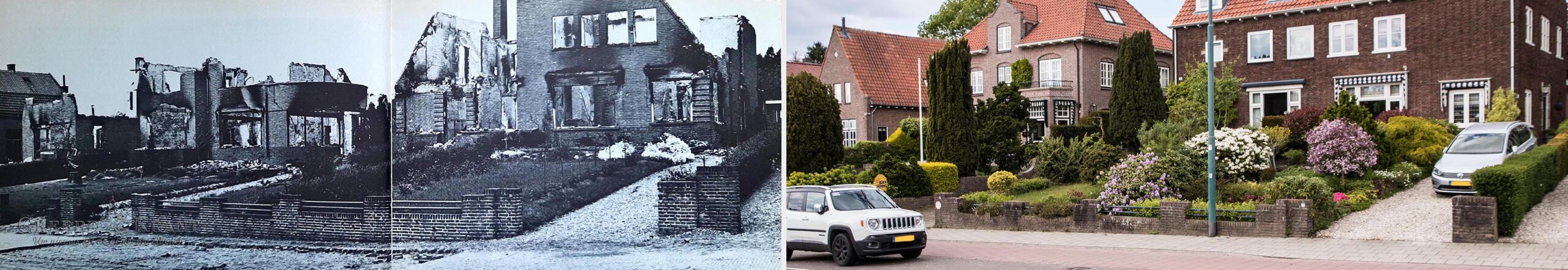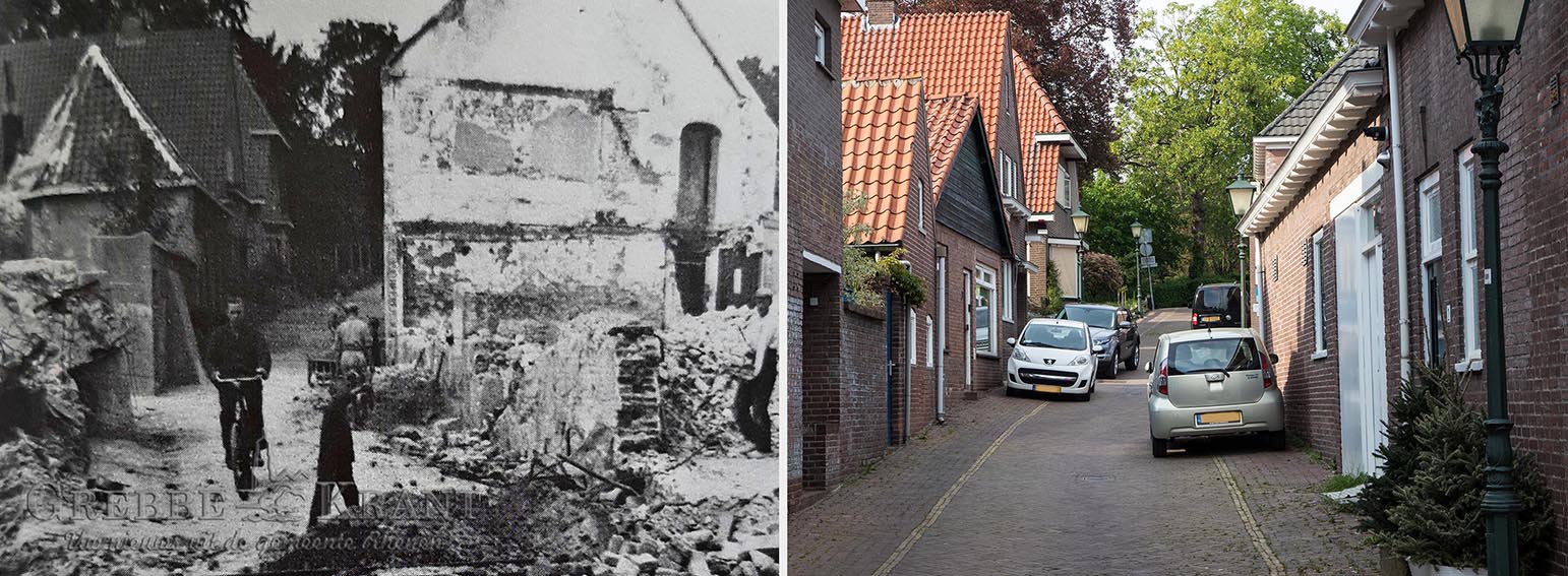 In 1980 werd het boek “Gebroken lente, Rhenen 1940-1945”, samengesteld door J.G. Koekoek en Dr. H.P Deys, gepubliceerd. Hierin staan 250 foto’s uit die 5 roerige oorlogsjaren. Daar doorheen bladerend werd ik nieuwsgierig naar wat er na 75 jaar in het huidige Rhenen nog terug te vinden is van de situatie geschetst op die foto’s. De binnenstad is toen grotendeels onherkenbaar beschadigd, maar verrassend genoeg, mits je goed kijkt, staan er nu nog steeds gebouwen uit die periode die min of meer onbeschadigd zijn gebleven of zelfs herbouwd zijn.