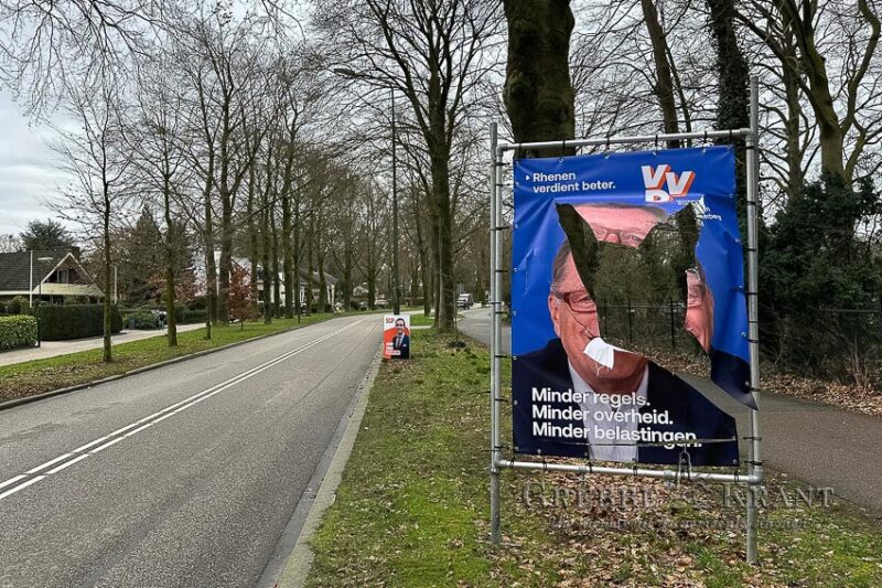 Rhenen – Vannacht zijn opnieuw verkiezingsborden in onze gemeente opzettelijk vernield. Dat is zeer verwerpelijk en ontoelaatbaar. In onze gemeente