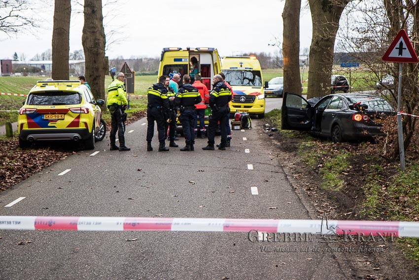 Rhenen, 18 december 2024. Auto botst op boom op de Autoweg. Fotograaf: Hans Hoekstra