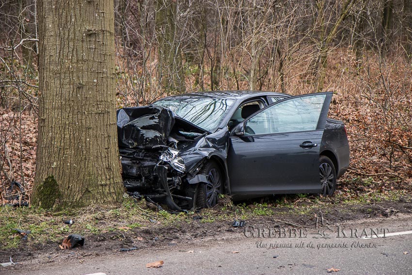 Rhenen, 18 december 2024. Auto botst op boom op de Autoweg. Fotograaf: Hans Hoekstra