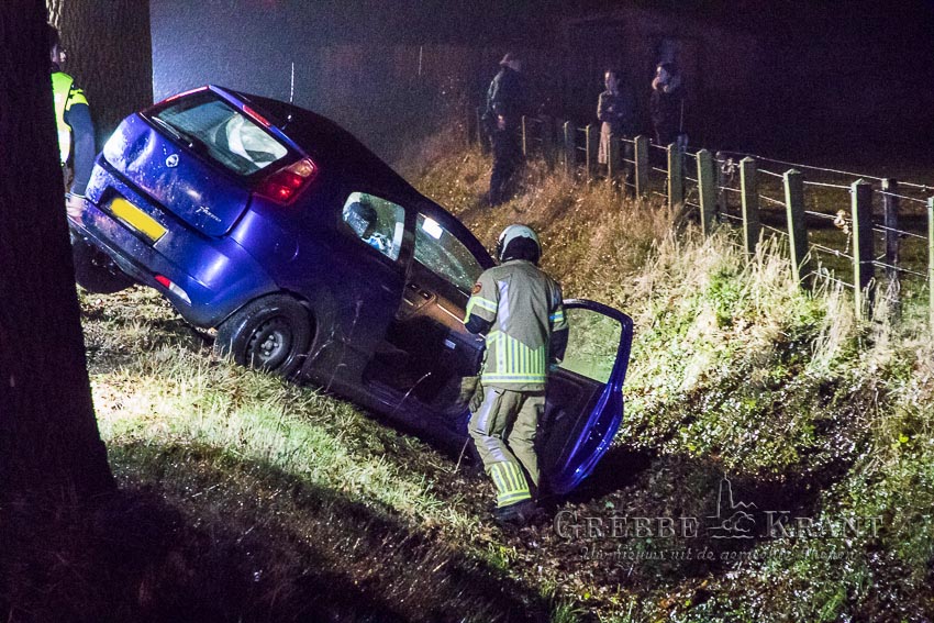 Rhenen, 27 december 2021. Auto botst op boom langs de Lijnweg. Fotograaf: Hans Hoekstra
