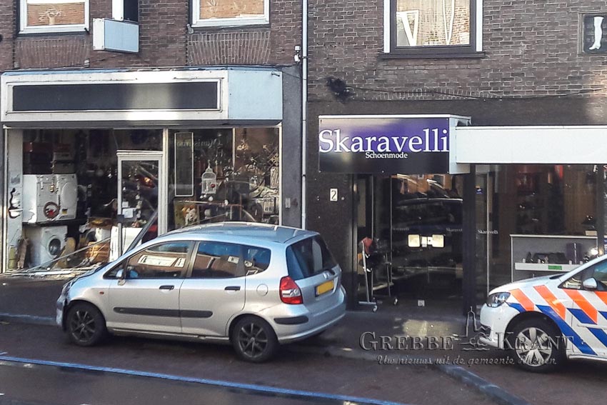 Rhenen, 10 december 2018. Auto ramt winkelpui. Fotograaf: Hans Hoekstra