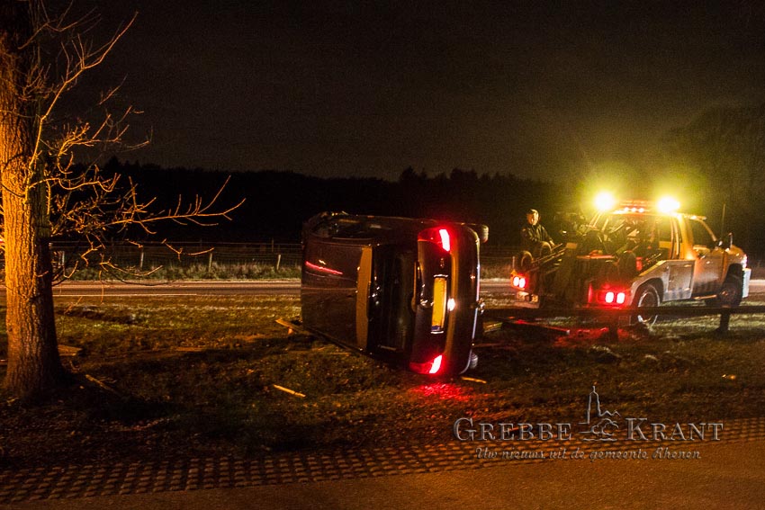 De brandweer werd nog ter assistentie opgeroepen, maar doordat de bestuurder zelf en gelukkig ongedeerd de auto kon verlaten, werd deze inzet al snel geannuleerd. De auto is door een berger weer op de wielen gezet en zwaar beschadigd afgevoerd.