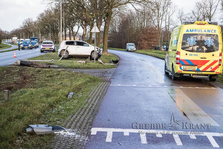 HH_030125_1020 Rhenen, 3 januari 2025. Auto zwaar beschadigd bij eenzijdig ongeval. Fotograaf: Hans Hoekstra