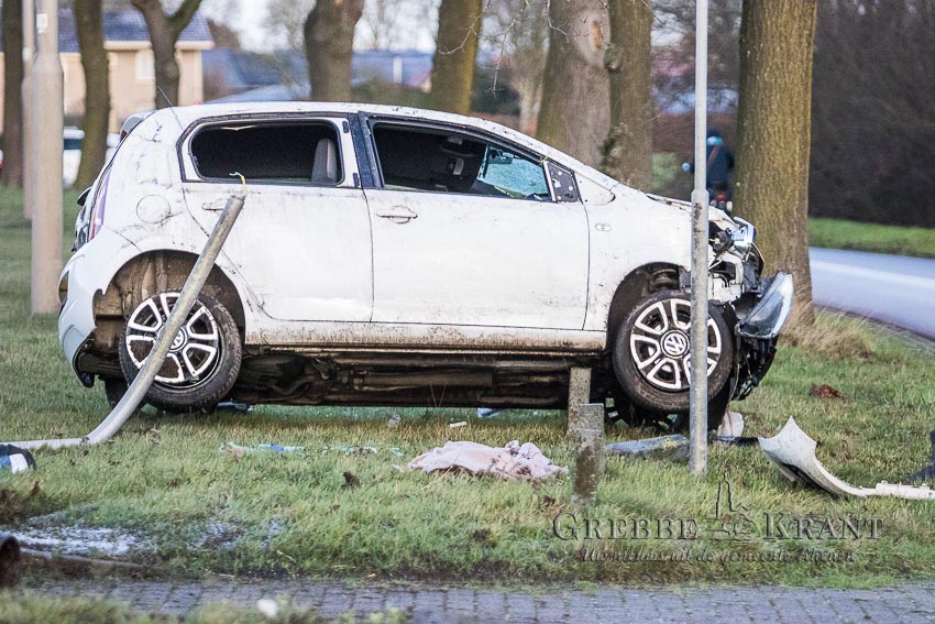 HH_030125_1022 Rhenen, 3 januari 2025. Auto zwaar beschadigd bij eenzijdig ongeval. Fotograaf: Hans Hoekstra