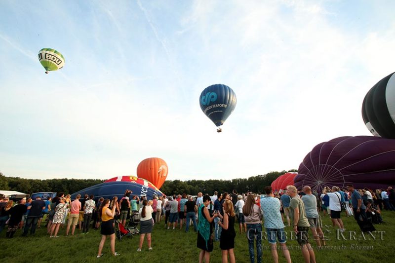 Rhenen – Onder grote belangstelling vertrokken vanavond zo’n 20 hete luchtballonnen met daarin een aantal sponsoren van de Rijnweek. De ballonnen vertrokken niet zoals voorgaande jaren vanaf de veerwei maar vanaf een veld aan de Toltoren. Zo’n 20 ballonen zetten koers richting Wageningen. De ballonnen zijn jaren geleden “verbannen” van de Rijnweek omdat ze de broedvogels in de Palmerswaard zouden storen.