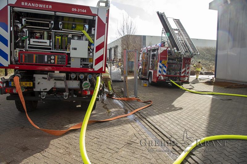 De brandweer bluste het vuur in de ventilatie-unit en nam de filters eruit om deze na te blussen. Door snel optreden bleef de schade voor het bedrijf beperkt.