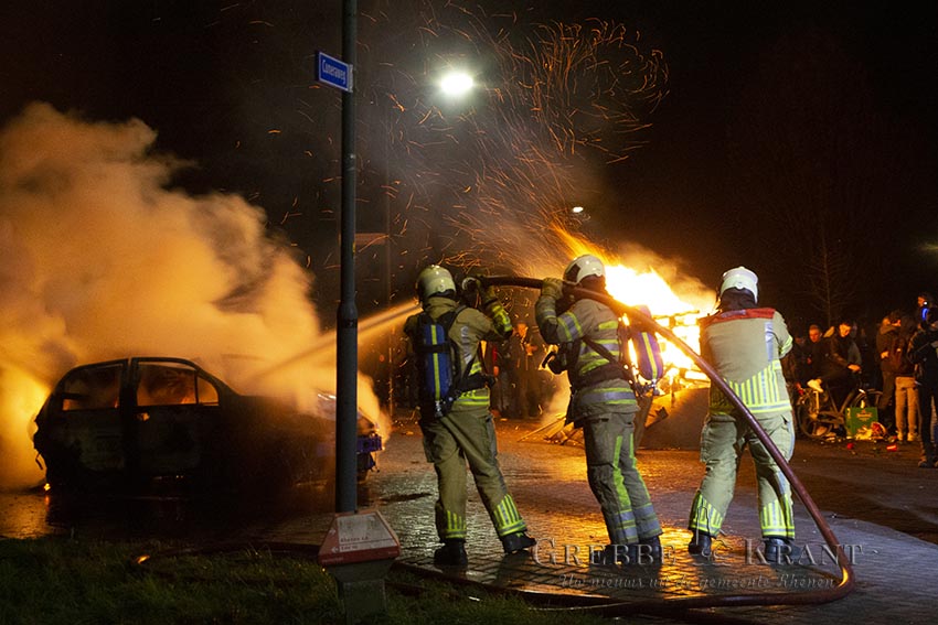 Achterberg  – Omstreeks 02:20 uur werd de brandweer van post Rhenen – Achterberg opgeroepen voor een autobrand op de kruising Achterbergsestraatweg – Cuneraweg in Achterberg. Op de kruising vierde een grote groep aanwezigen het nieuwe jaar. Op het moment dat de brandweer de blussing van de auto had gestart werden er enkele zware stukken vuurwerk naar de brandweermannen geworpen waarop de bevelvoerder de blussing liet staken omdat de veiligheid van zijn manschappen in het geding kwam.