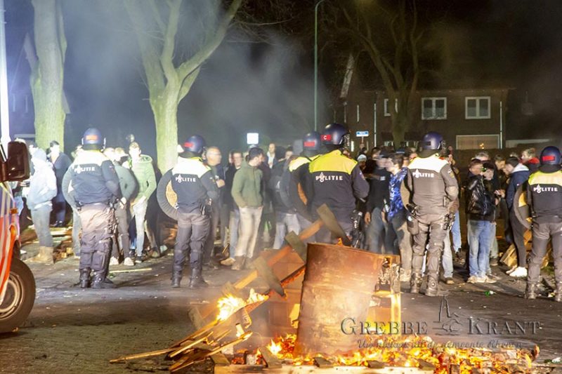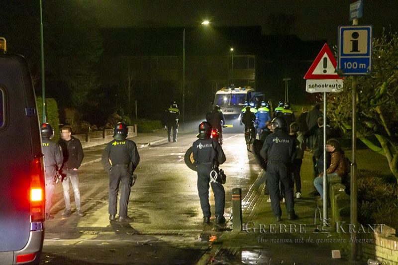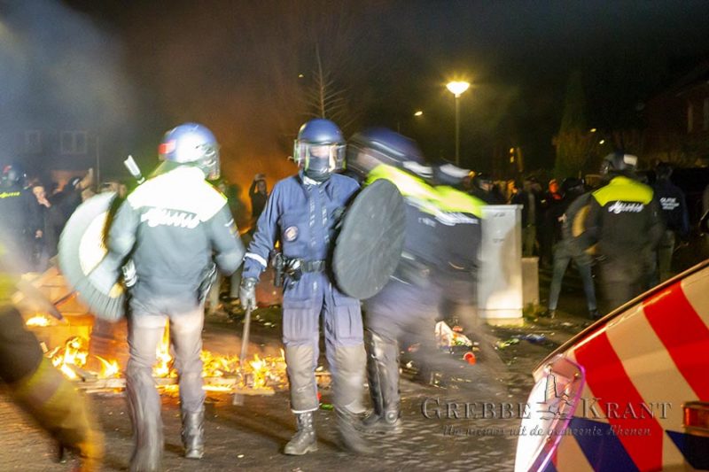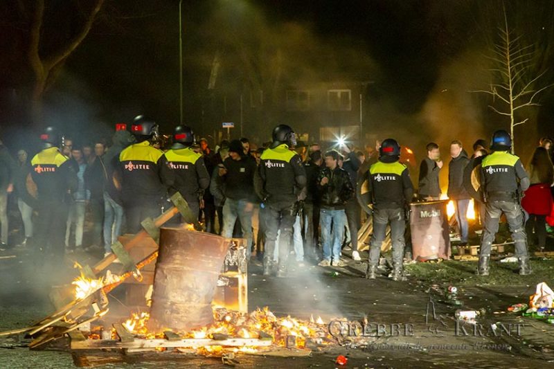 De aanwezige (wijk)agenten konden niet voorkomen dat er nog meer vuurwerk richting de brandweer gegooid werd. Meerdere politieagenten kwamen ter plaatsen die de aanwezigen sommeerden te vertrekken. Hier werd echter geen gehoor aangegeven en dus werd de hulp van de mobiele eenheid (ME) ingeroepen. Ook kwam er een “Brand en Traangas” team (BraTra) ter plaatsen. De ME voerde een charge uit waarbij enkele rake klappen werden uitgedeeld. De kruising was echter zeer snel leeg waarna de brandweer weer verder kon met het blussen van de auto.