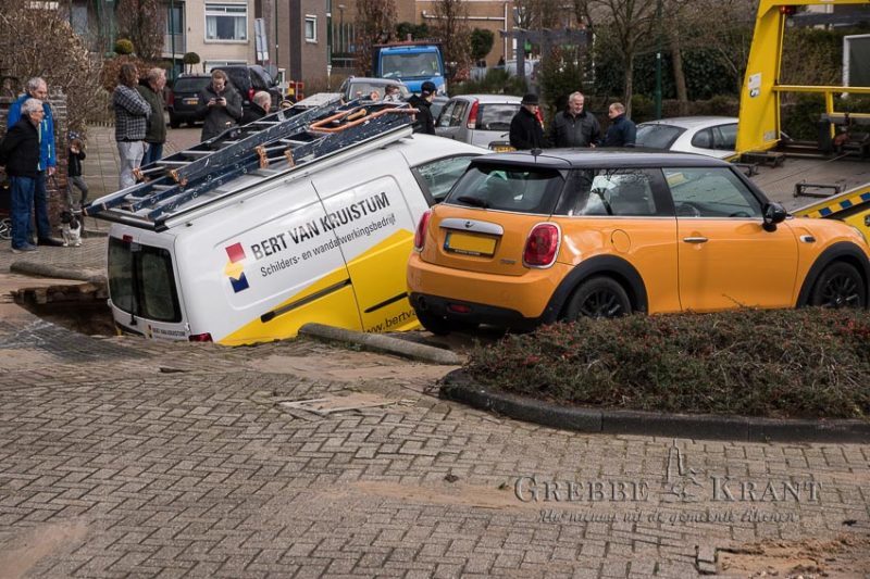 Busje zakt weg in de grond