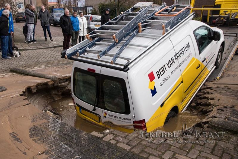 Als gevolg van het weggespoelde zand ontstonden 2 grote gaten, in eentje zakte deels een geparkeerd busje van een schildersbedrijf, dat door een bergingsbedrijf is afgevoerd.