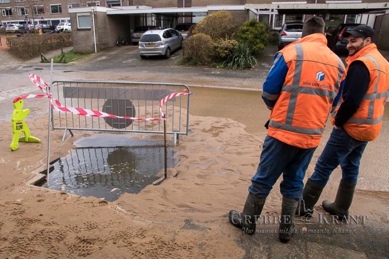 Rhenen – Zondagmorgen ontstonden vlak na elkaar 2 waterleidingbreuken, de eerste op de parkeerplaats onderaan de Achterbergsestraatweg bij het makelaarskantoor en de 2e op de Teldersweg. Hierdoor kwamen straten blank te staan en zat een deel van Rhenen zonder water of had te kampen met een lage waterdruk. Ook kan het water enige tijd een beetje bruin gekleurd zijn. Geadviseerd wordt om in dat geval het water enige tijd door te laten stromen totdat het weer helder is.