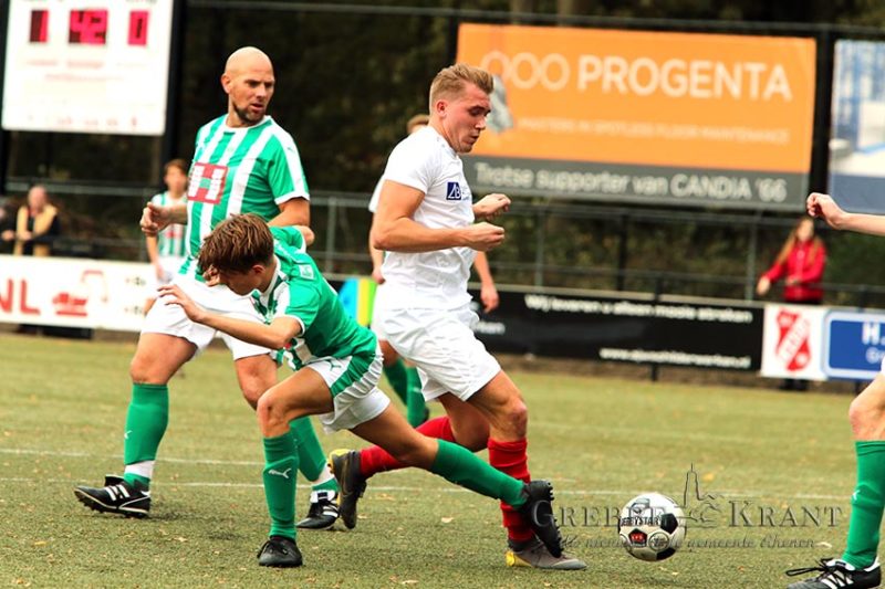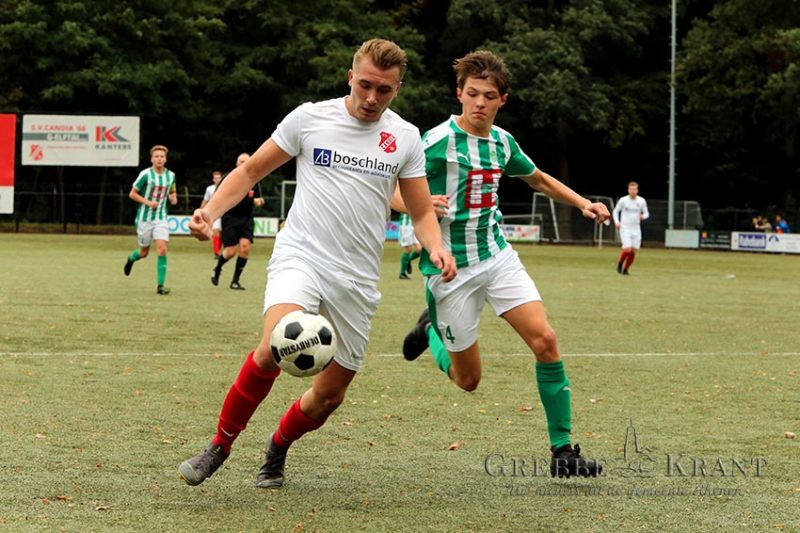 Rhenen – De rode tegen de groene, Candia tegen de Musketiers, een wedstrijd met een hoog verwachtingspatroon. Beide ploegen begonnen zeer aanvallend aan de wedstrijd met een licht voordeel voor de thuisploeg. Toch wisten de Candianen het zeer minieme veldoverwicht niet om te zetten in doelpunten. De Musketiers waren goed voorbereid richting Rhenen vertrokken en wisten iedere keer precies de angel uit de aanval van de Rhenenaren te halen. Toch was het uiteindelijk de aanvoerder Daan Achterberg die de sterke verdediging van de Mussen wist te doorbreken en het eerste doelpunt voor Candia op het scorebord wist te zetten. Voor de Musketiers was het Marwan van Heugten die het inval-keeper Mike van Dijk eenmaal flink lastig wist te maken. Van Dijk verdedigde zijn doel goed en met een 1-0 stand in het voordeel van Candia’66 vertrokken beide ploegen richting de rust.