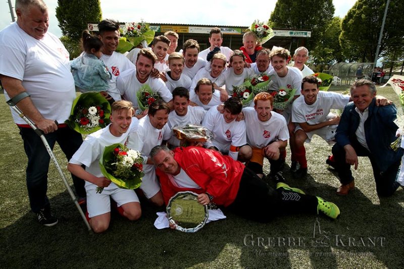 Rhenen – Het heeft de selectie van Candia’66 3 seizoenen gekost, 1x nacompetitie en 1x een bloedstollende kampioenschaps-wedstrijd tegen Bunnik’73 maar vandaag is het dan eindelijk zover…. het eerste elftal van Candia’66 wint de laatste wedstrijd van het seizoen ’16/’17 tegen Fortissimo uit Ede en behaalt daarmee het kampioenschap van de 4e klasse H West 1 binnen. Met het kampioenschap promoveert Candia’66 ook naar de 3e klasse.
