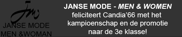 De competitie kende geen cadeautjes en er is bikkelhard gestreden door alle deelnemers. Candia’66 trok uiteindelijk aan het langste eind en wist met slechts 1 punt voorsprong op vv Veenendaal het kampioenschap in de 4e klasse en daarmee de promotie naar de 3e klasse binnen te hengelen. Op sommige momenten leek het erop dat Candia’66 het kampioenschap door de vingers zag glippen door slordig puntverlies tegen onder andere de tegenstander van vandaag, Fortissimo uit Ede. In de laatste wedstrijd voor de winterstop verloor Candia’66 nog van Fortissimo en gingen de Rhenenaren op slechts doelsaldo als winterkampioen de winterstop in.
