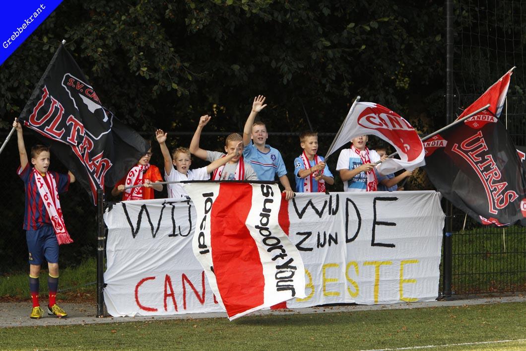 Rhenen, 05 oktober 2014 – Het eerste elftal van Candia ’66 zit stevig in het zadel na een 7-1 overwinning op S.V. Hatert. Ook al leek de wedstrijd tegen de hekkensluiter een makkelijke pot te worden, Candia onderschatte de tegenstander niet en ging vol aan de bak. Er was dan ook slechts 1 minuut nodig om de openingstreffer achter de doellijn te trappen. 2 minuten later kon de keeper van S.V. Hartert voor de 2e keer de bal uit het net pakken. Deze glansrijke wedstrijdopening was de opmars naar wat een grote uitslag leek te gaan worden.