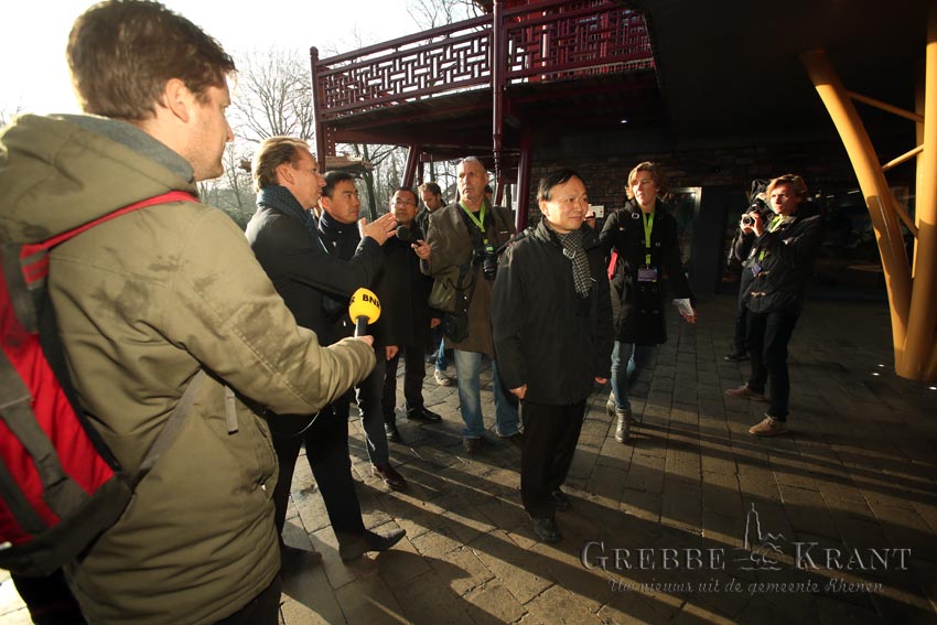 Rhenen – Dinsdag 10 januari is onder grote media-belangstelling het reuzenpandaverblijf ‘Pandasia’ geïnspecteerd door Chinese autoriteiten. De delegatie bestond uit dhr. Zhong Yi, directeur van de Chinese Wildlife Conservation Association (CWCA), dhr. Liu Dewang, directeur van State Forestry Administration (SFA), dept. of Wildlife & Plant Conservation and Nature Reserve Management, dhr. Wei Rongping, directeur van de Dujiangyan Pandabase en mevr. Luo Yu, directeur van de International Cooperation Department, Chinese Conservation and Research Centre for the Giant Panda (CCRCGP), hebben het nieuw gebouwde reuzenpandaverblijf in Ouwehands Dierenpark geïnspecteerd. Het Pandasia projectteam van Ouwehands Dierenpark vertegenwoordigd door Robin de Lange, directeur, en José Kok, manager Zoölogie, Educatie en Onderzoek, heeft het gezelschap deze dag een rondleiding gegeven en hen gedetailleerd geïnformeerd over het verblijf, voorgenomen management en laatste stand van zaken met betrekking tot de voorbereidingen voor de komst van de reuzenpanda’s naar Rhenen.
