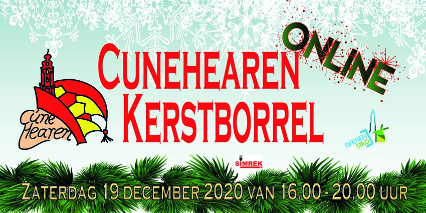 Rhenen – In samenwerking met de winkeliersvereniging Rhenen Stad organiseert CV de Cunehearen op zaterdag 19 december van 16:00 – 20:00 uur de Cunehearen Kerstborrel Online. Er zijn een aantal activiteiten bedacht die mensen met elkaar verbinden, bijdragen aan gezelligheid en licht geven in deze toch al donkere dagen. Als afsluiting van deze activiteiten is er op zaterdag 19 december een livestream muziekprogramma die voor iedereen live te volgen is via www.cunehearen.nl.