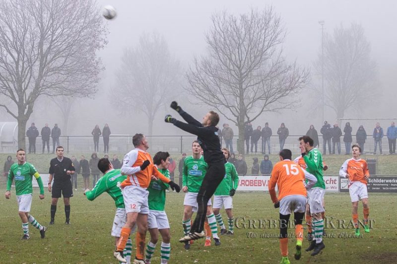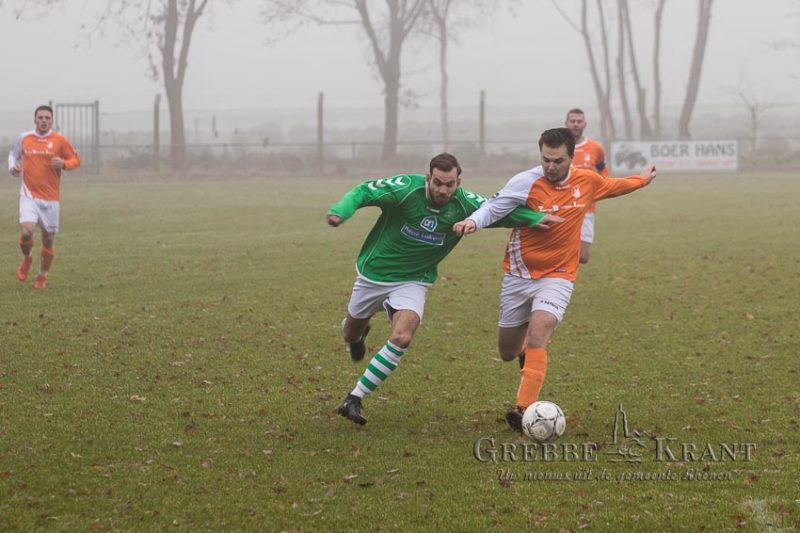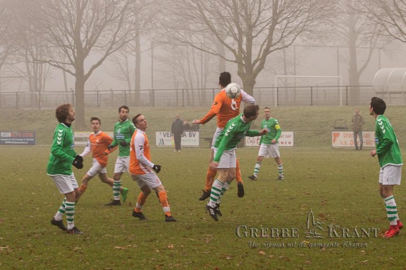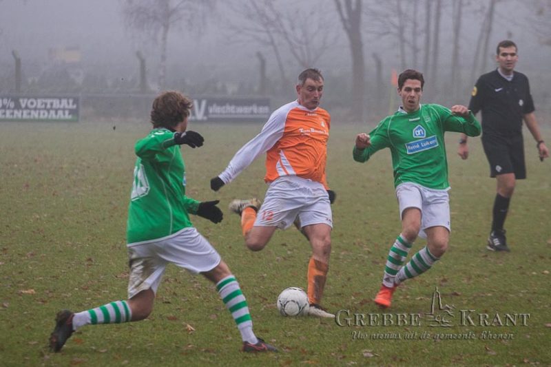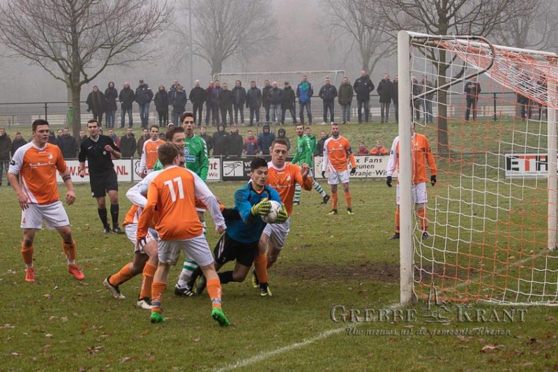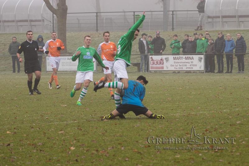 Elst – Op deze koude, mistige zaterdagmiddag op het sportpark in Elst, raakten de gemoederen aardig verhit tijdens de derby Oranje Wit – Musketiers. De scheidsrechter had dan ook alle moeite om de orde te handhaven en trok veelvuldig het bonnenboekje.
