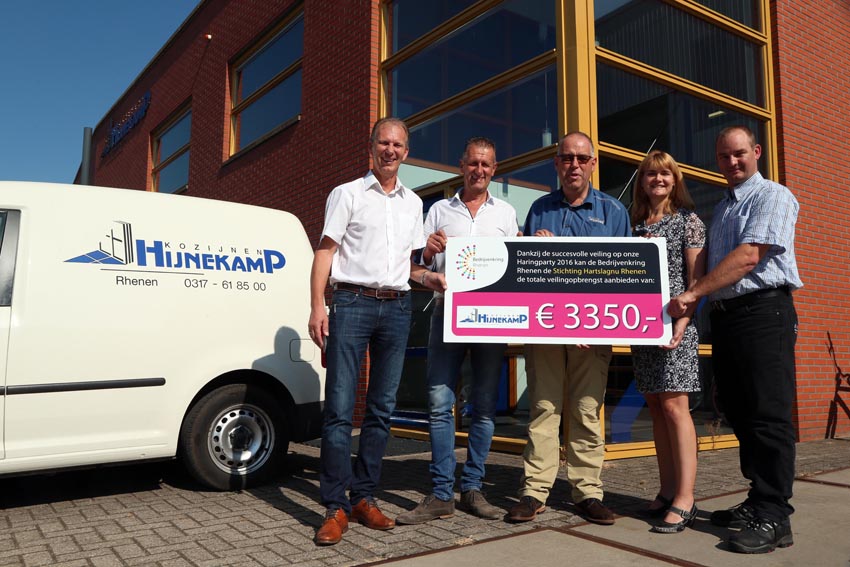Op 14 september schonk de bedrijvenkring Rhenen een cheque ter waarde van € 3.350,00 aan de stichting HartslagNu Rhenen. Het geld was de opbrengst van de veiling van het zogenaamde “Rhenens vaatje Haring”, aangevuld met een verloting, tijdens de jaarlijkse haringparty van de bedrijvenkring Rhenen. Hoogste bieder voor het vaatje haring was Gijs Hijnekamp van de gelijknamige kozijnenfabriek.