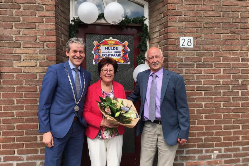 Rhenen – Het echtpaar Hovestad-Van de Pavert ontving vandaag burgemeester Hans van der Pas. Hij feliciteerde het echtpaar met hun 60-jarig huwelijk. Cees (81) en Eef (78) trouwden op 25 april 1958 in Veenendaal. Zij zijn in 1960 in Rhenen komen wonen, hebben daar hun zoon en twee dochters groot gebracht en wonen nog steeds op hetzelfde adres. Zij vieren hun diamanten huwelijk zaterdag samen met de drie kinderen, tien kleinkinderen en elf achterkleinkinderen.