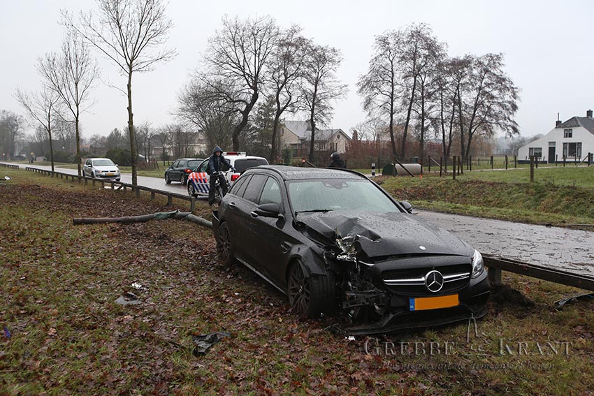 Rhenen, 06 februari 2019. Auto ramt boom en lantaarnpaal. Fotograaf: Peter Kuhl.