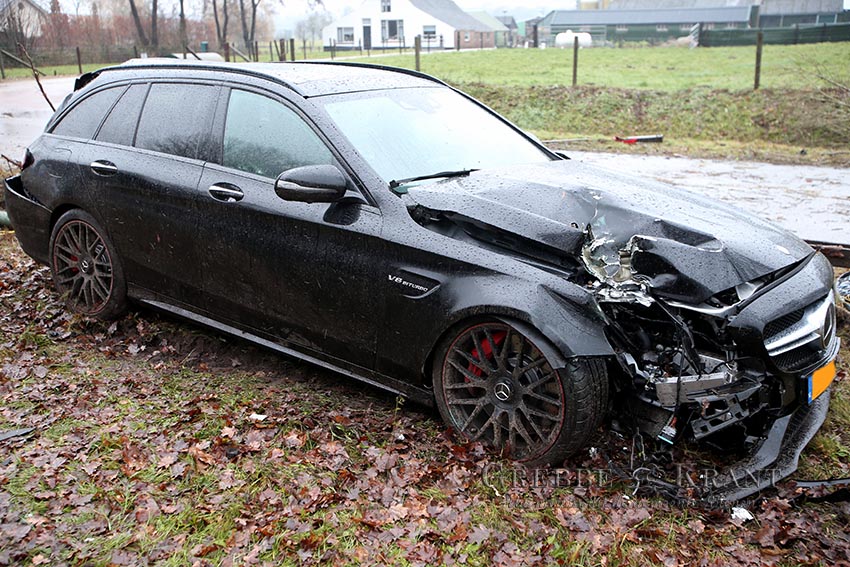 Rhenen, 06 februari 2019. Auto ramt boom en lantaarnpaal. Fotograaf: Peter Kuhl.