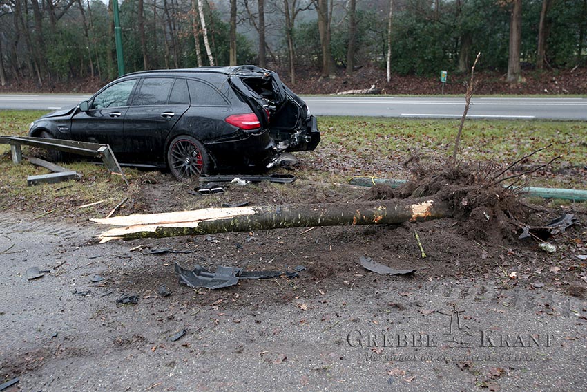 Rhenen, 06 februari 2019. Auto ramt boom en lantaarnpaal. Fotograaf: Peter Kuhl.