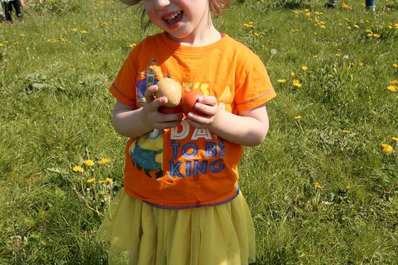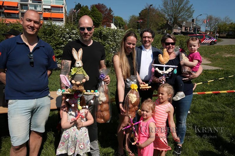 De leukste Palmpaastakken ontvingen uit handen van loco-burgemeester Peter de Rooij een leuk presentje. Na de uitreiking mochten de kinderen het veld in op zoek naar de fel begeerde stenen eieren. Deze eieren konden geruild worden tegen echte eieren. In totaal werden er zo’n 2100 eieren uitgedeeld.