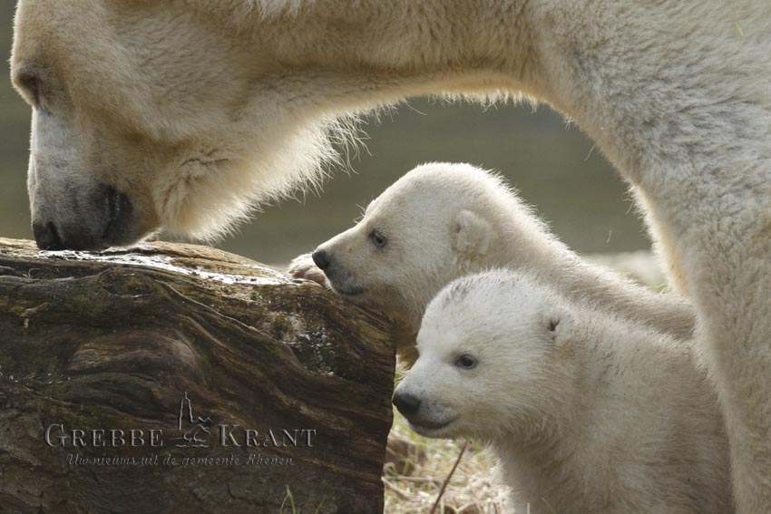 Moeder Freedom was aanvankelijk bevallen van een drieling maar al vrij snel is 1 van de 3 jonge ijsberen overleden. De overgebleven 2 jonge ijsberen zijn nu al zo actief dat het tijd werd om kennis te maken met het buitenverblijf van de ijsberen.
