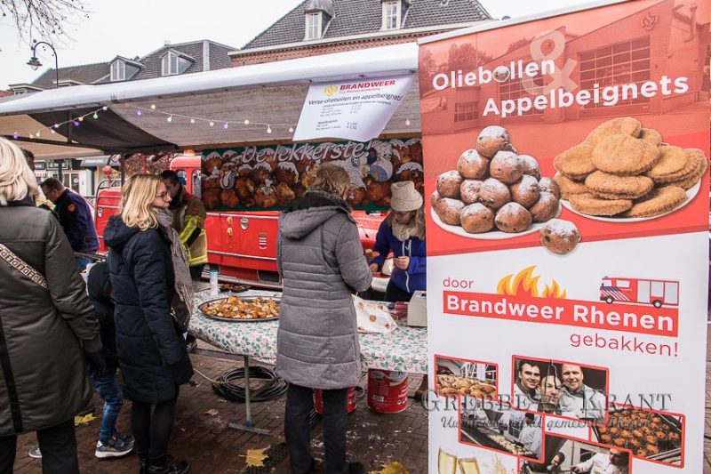 Rhenen – Zaterdag bruiste het in het winkelcentrum van Rhenen tijdens de kerstfair. Op de Frederik van de Paltshof waren vele kraampjes opgesteld met mooie kerstartikelen. Ook de brandweer stond daar heerlijke oliebollen en appelbeignets te bakken voor het goede doel. Naast de marktkraampjes hadden ook diverse winkeliers hun waren voor de winkel uitgesteld. Op het Henk Deysplein werd voor de kinderen een theatervoorstelling met de kerstman gegeven. Voor en na de voorstelling konden de kinderen met kerstman in rondrit in zijn arrenslee maken. Deze kinderactiviteiten waren georganiseerd door de carnavalsvereniging “De Cúnehearen”.