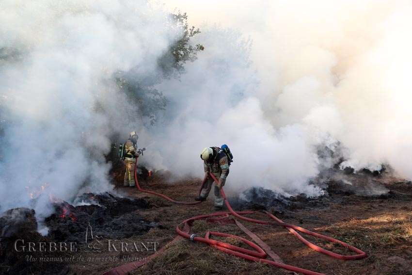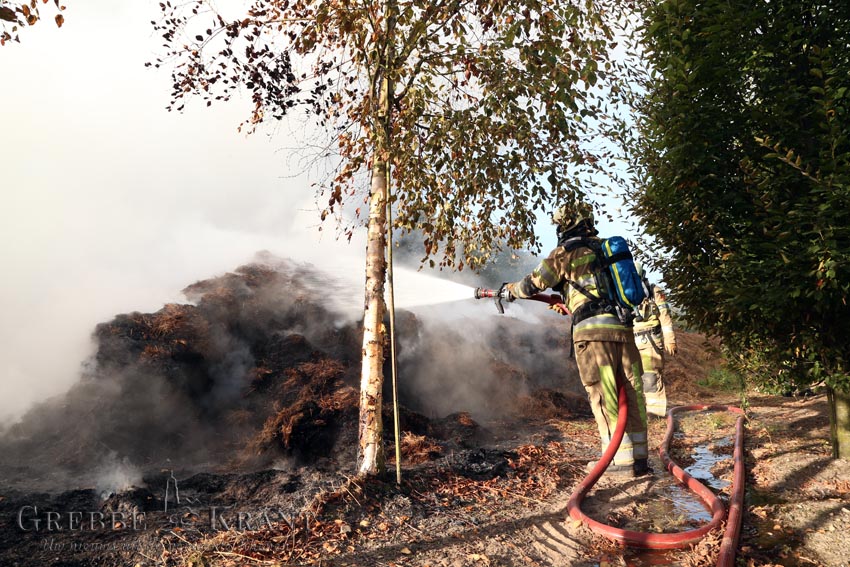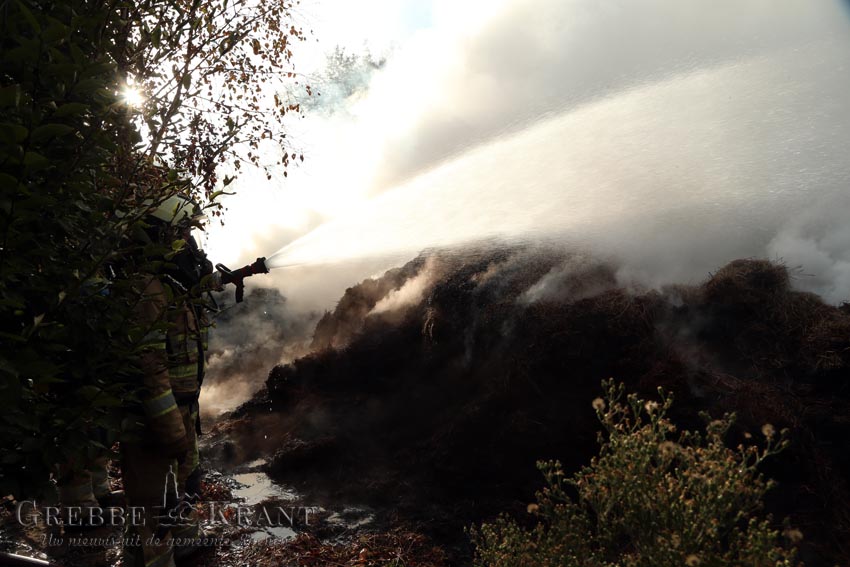 In verband met de problematische wateraanvoer werd de brandweer van Rhenen/Achterberg geassisteerd door de korpsen van Elst, Veenendaal en Amerongen. Tevens werd er groot water transport ingezet vanaf de Grift. Met behulp van een graafmachine wordt de berg gras uit elkaar getrokken en afgeblust door de brandweerlieden.