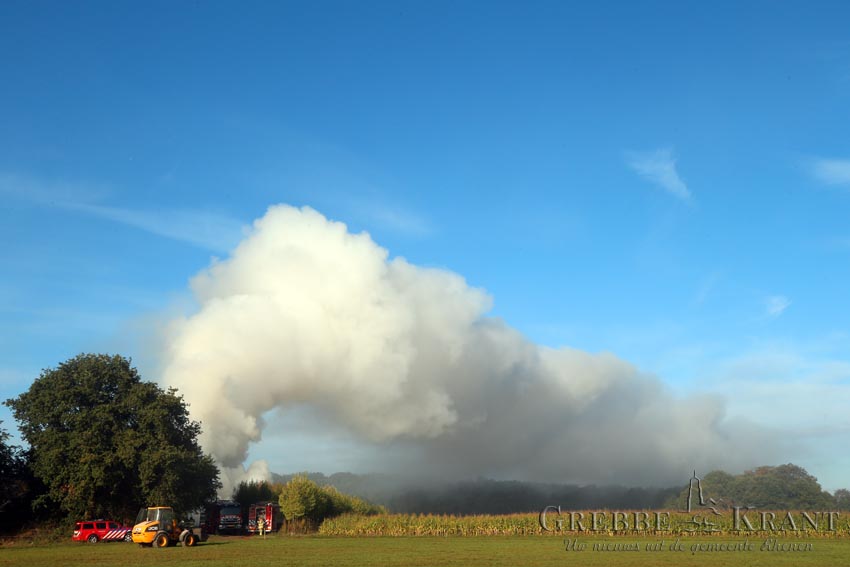 Een grote rookpluim trok over de bebouwde kom van Rhenen. Bij de brand zijn geen gevaarlijke stoffen vrij gekomen. Een berg van 10 meter breed bij 30 meter lang en 1,5 meter hoog moet als verloren worden beschouwd.
