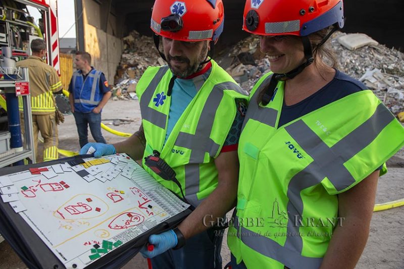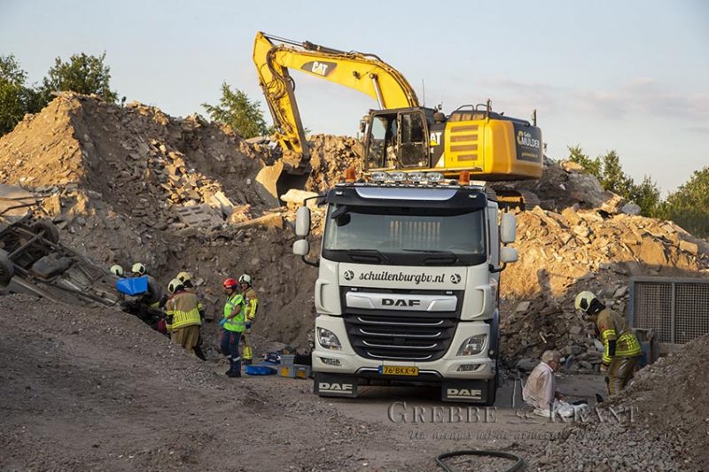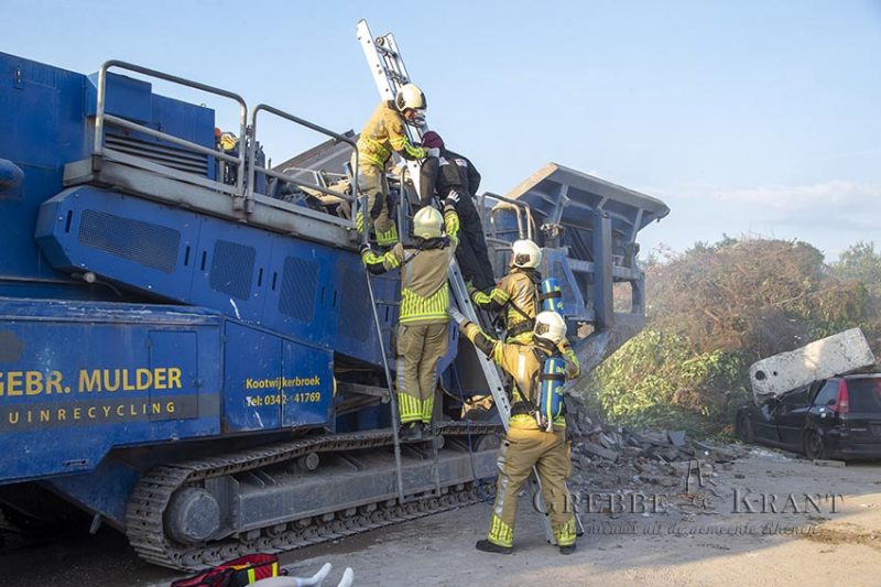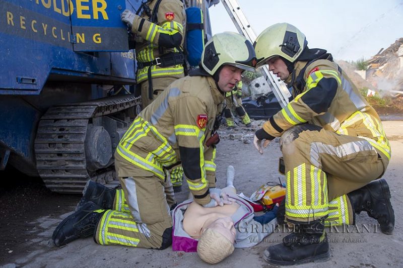 Op een puinbreker die op het terrein staat ligt nog een slachtoffer. Als deze via een ladder van de breker gehaald wordt blijkt de man niet meer te ademen. Direct wordt met de reanimatie begonnen en ook wordt er een AED ingezet.