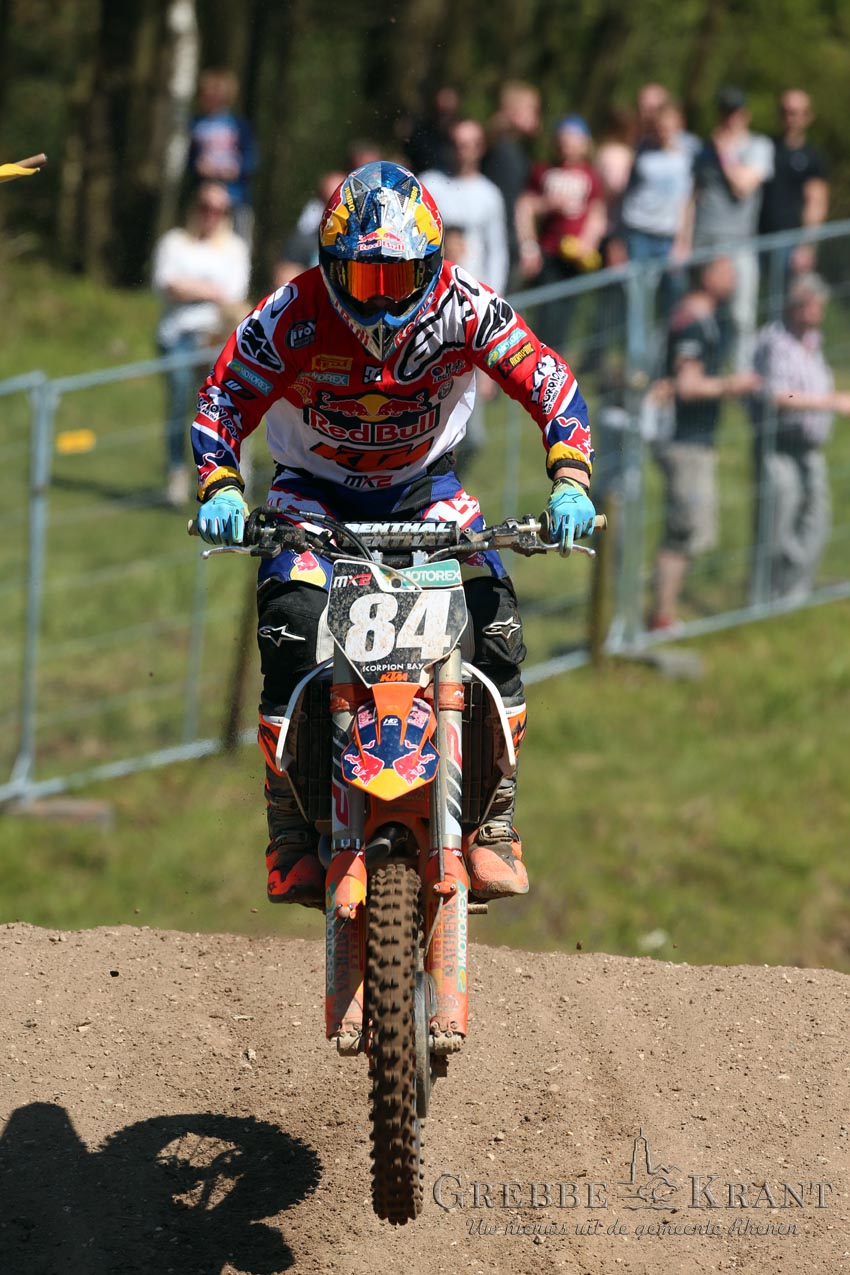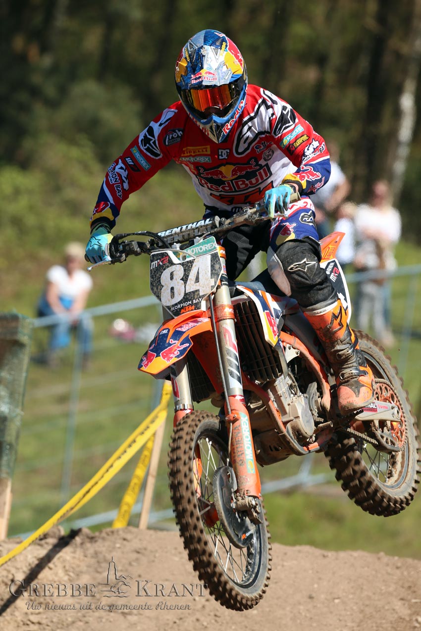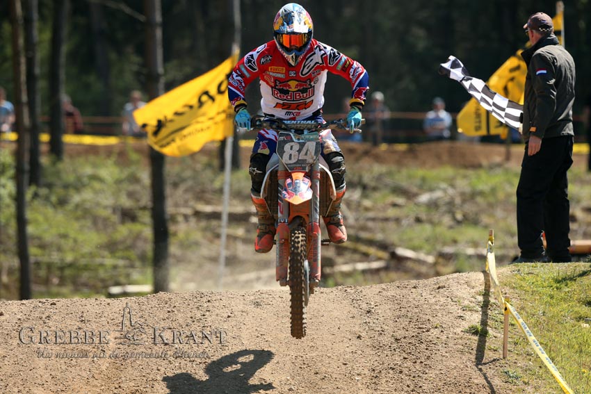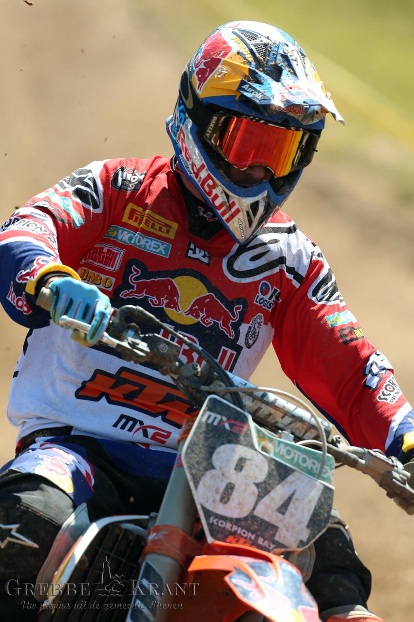 Op het zonovergoten circuit zagen enkele duizenden toeschouwers hoe Jeffrey Herlings als gedoodverfde favoriet het complete veld in de MX2-klasse achter zich liet. Herlings (met startnummer 84) won met grote overmacht beide manches.