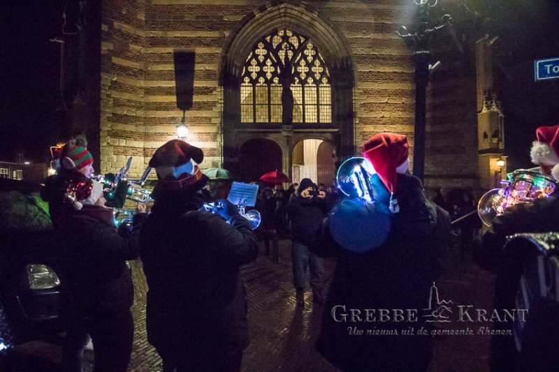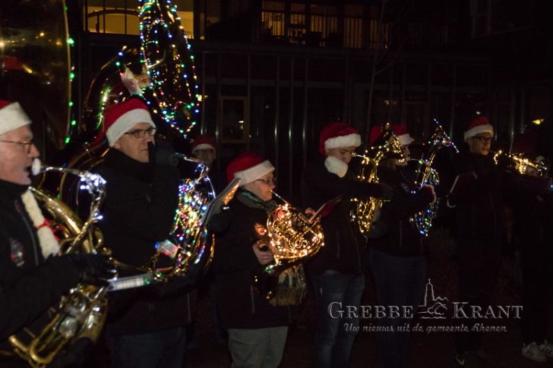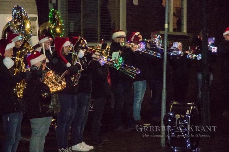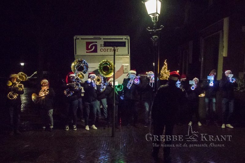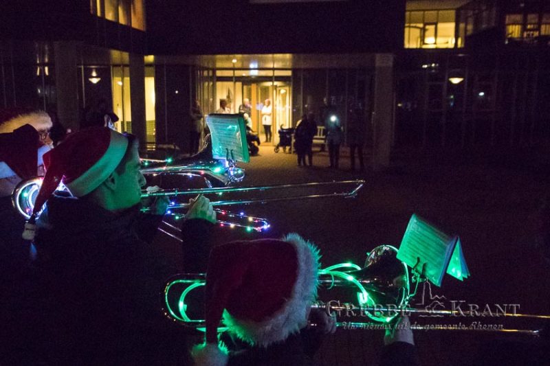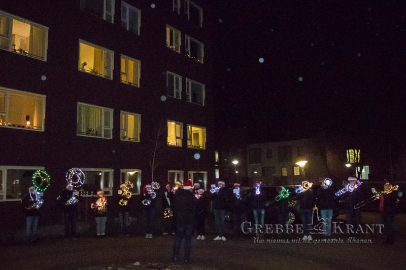 Rhenen – Op Kerstavond heeft het Kerstensemble van Showharmonie OBK Rhenen op diverse plekken in Rhenen korte optredens gegeven. Om 9 uur werd bij de Tollekamp de eerste liedjes gespeeld, waarvoor diverse bewoners het druilerige weer trotseerden en buiten kwamen genieten van klassieke en moderne kerstliedjes.