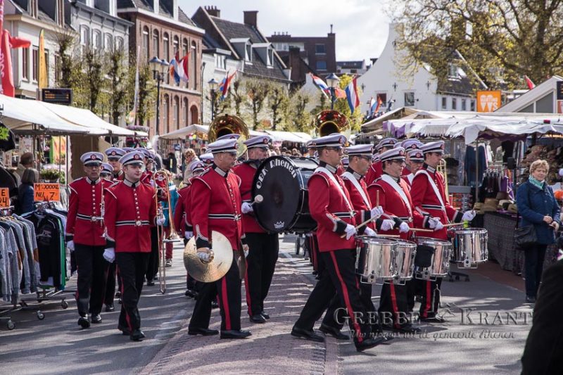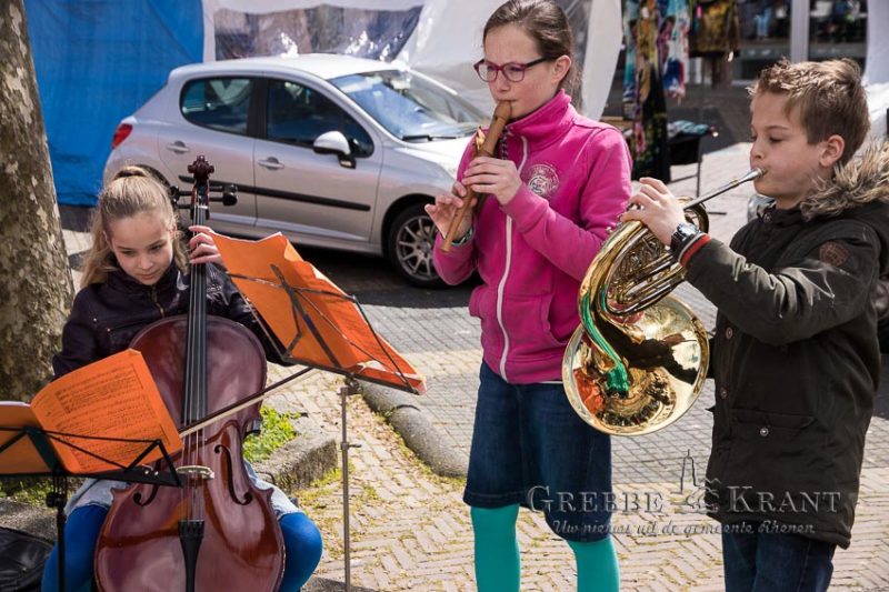 Een half uur later was de aubade in Rhenen, waar burgemeester Hans van der Pas en wethouder Jan Kleijn aanwezig waren. In beide plaatsen begonnen daarna de kindermarkten en in Rhenen natuurlijk ook de traditionele braderie.