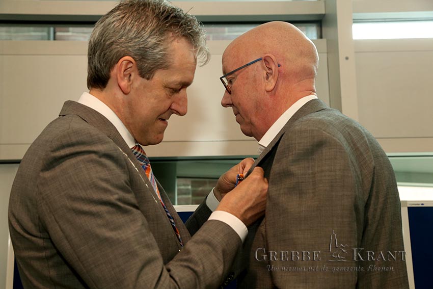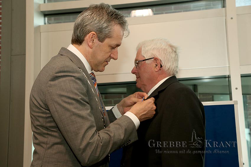 Burgemeester Hans van der Pas belichtte – in het bijzijn van familie en vrienden van de gedecoreerden en een groot aantal oud-gedecoreerden – in een persoonlijke toespraak hun bijzondere verdiensten voor, voornamelijk de Rhenense samenleven. De heer S. Korver kon helaas niet in het Huis van de Gemeente aanwezig zijn. Hij werd, in het bijzijn van familie en vrienden in onderscheiden als Officier in de Orde van Oranje Nassau. Ook zijn bijzondere verdiensten werden door de burgemeester in een persoonlijke toespraak verwoord.