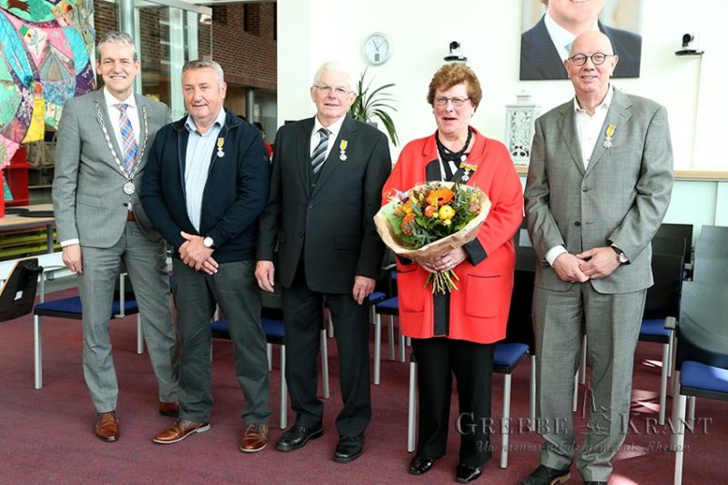 Mevrouw E.S. Kamerbeek en de heren H. Wisserhof, C.A. Rijksen en A. van Harten, werden in de hal van het Huis van de Gemeente allen onderscheiden als Lid van de Orde van Oranje Nassau.