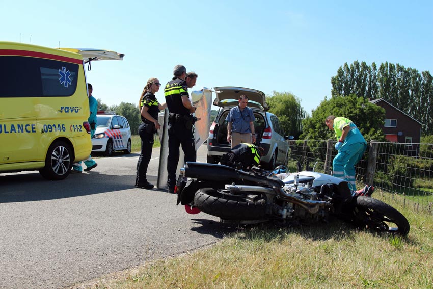 Rhenen, 01 juli 2015 – Op de Grebbedijk tussen Rhenen en Wageningen vond vandaag een aanrijding tussen een motor en een personenauto plaats.