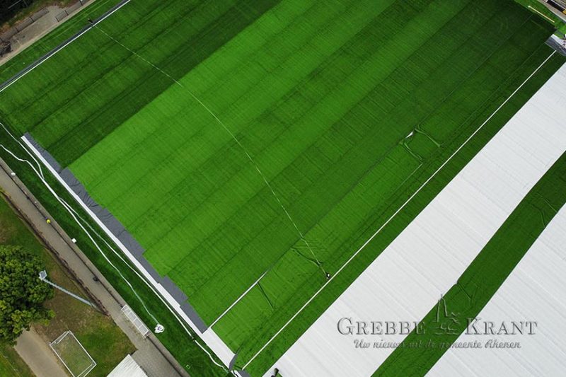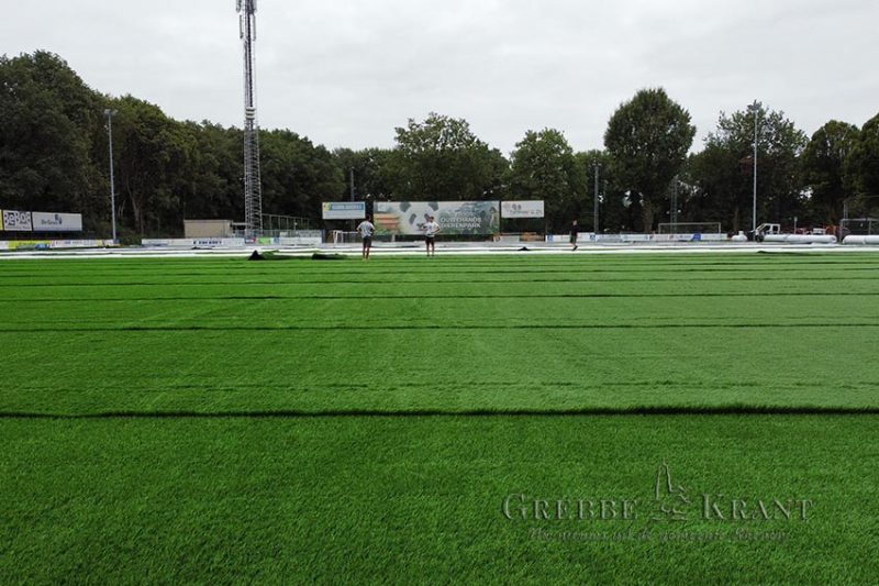 Het nieuwe gras oogt frisser, groener en voelt fijn aan. De grasmat is mooi op tijd klaar voor het nieuwe voetbalseizoen.