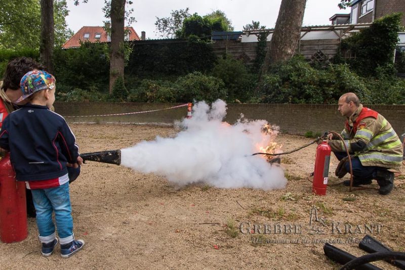 De ochtend werd goed bezocht, maar helaas gooide het regenachtige weer daarna roet in het eten. Desondanks kwamen veel kinderen een kijkje nemen en konden zich even een echte brandweerman of -vrouw voelen bij de diverse blusspelletjes of het doven van een zinderend vuur met een CO2-blusser.