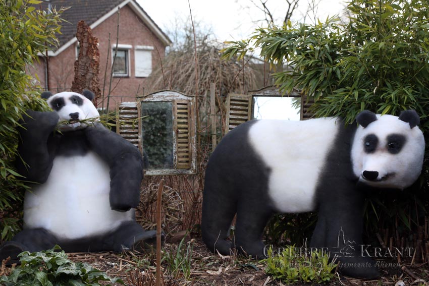 De panda’s zijn eigendom van Dhr. Henk Coppes. Coppes verzorgde al eerder een aantal ijsberen die rond de kerstdagen door de buurt verspreid stonden opgesteld. Coppes knutselde de ijsberen in elkaar en stelde ze daarna beschikbaar als decoratie in de buurt. Ook de panda’s komen van de hand van Dhr. Coppes, die er al veel plezier aan heeft beleefd. De panda’s zullen de komende tijd in diverse tuinen te bewonderen zijn.