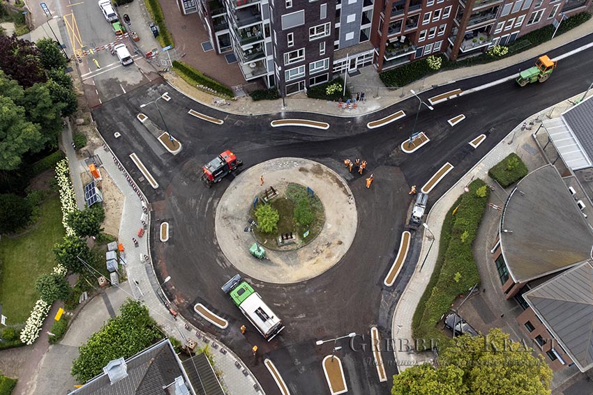 Rhenen, 01 augustus 2024. Nieuw wegdek rotonde Herenstraat. Fotograaf: Peter Kuhl.