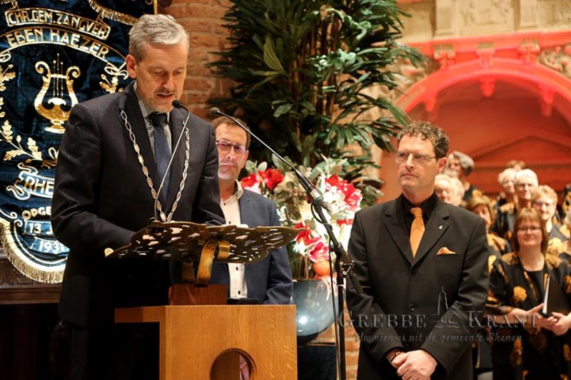 De uitreiking van de onderscheiding vond plaats tijdens het laatste concert van het Eben-Haëzer Koor Rhenen in de Cunerakerk van Rhenen.