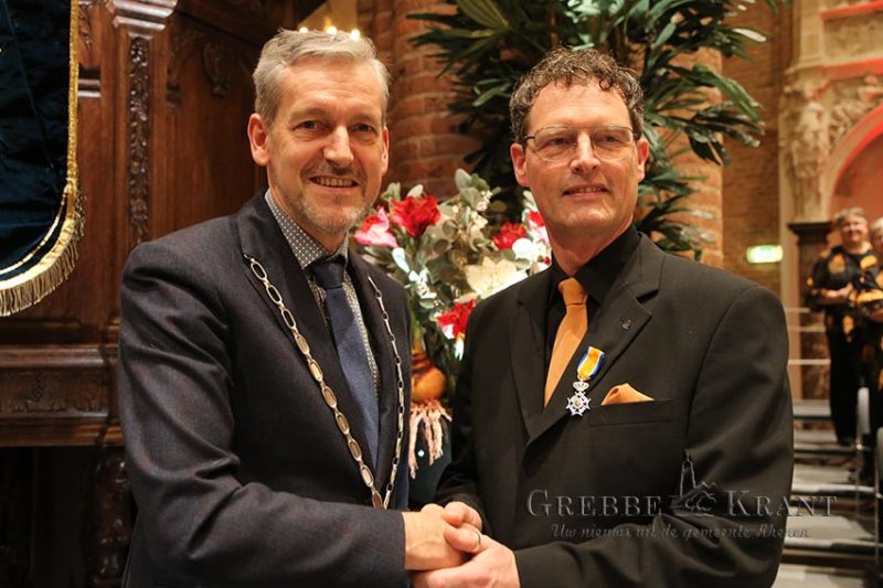 Rhenen – De heer René de Jong (50 jaar) uit Ede, is vrijdagavond benoemd tot Lid in de Orde van Oranje-Nassau. Burgemeester Hans van der Pas heeft de versierselen op die horen bij deze Koninklijke onderscheiding uitgereikt.
