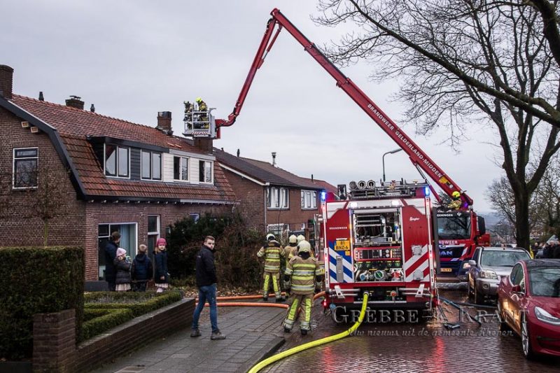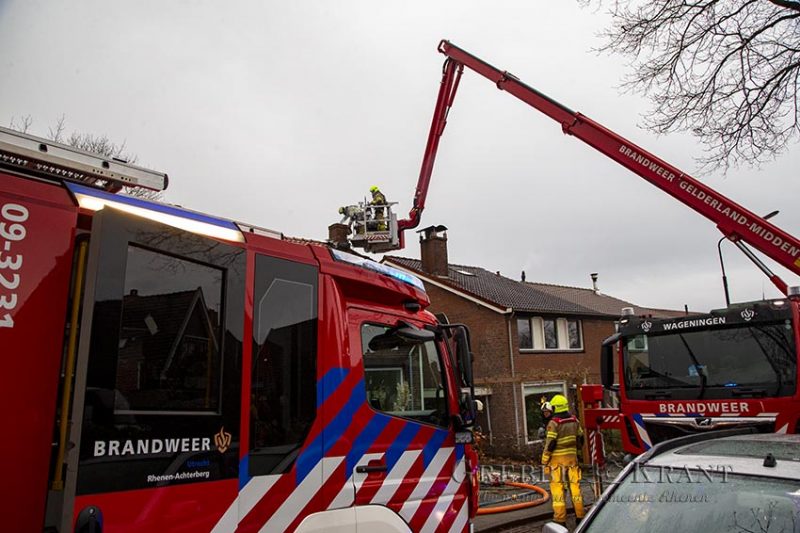 Rhenen – Maandagmiddag werd tegen half vier de brandweer gealarmeerd voor een schoorsteenbrand in een woning aan de Achterbergsestraatweg. Toen de brandweer ter plaatse kwam, sloegen de vlammen al uit de schoorsteen. De bewoners waren inmiddels al veilig naar buiten. De vuurhaard is uit het huis gehaald en buiten geblust. Ondertussen was er uit voorzorg opgeschaald naar middelbrand en waren een tweede tankautospuit en de hoogwerker uit Wageningen al gearriveerd.