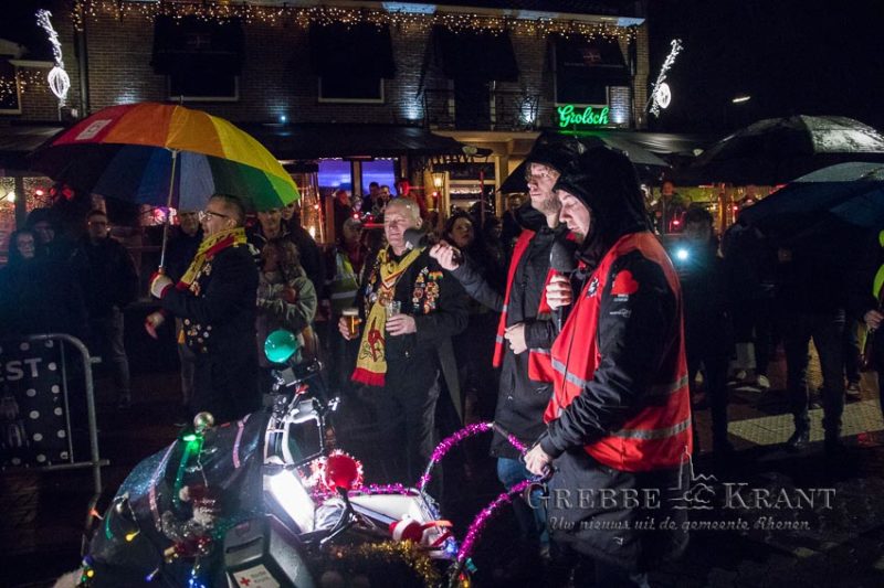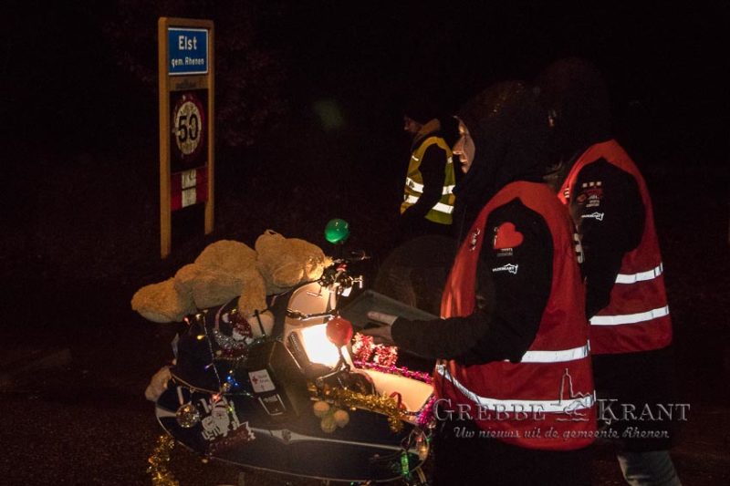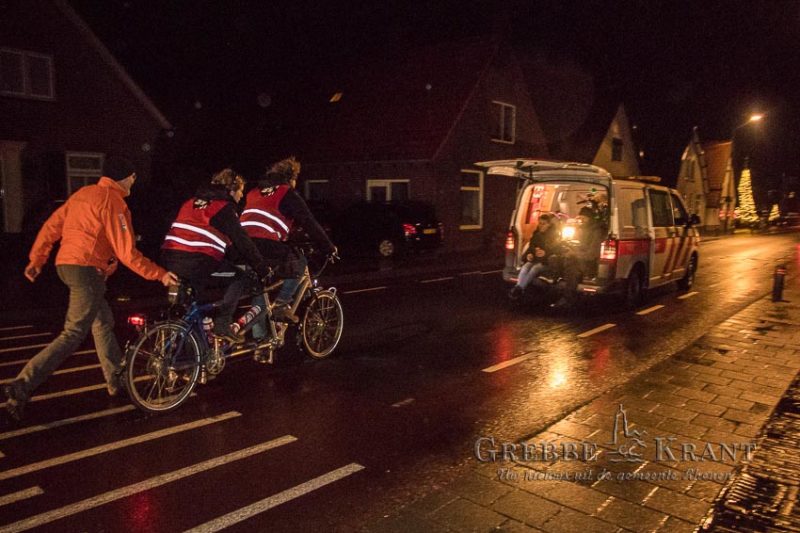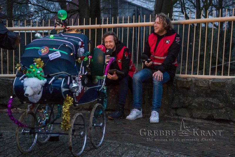 In Elst werd een cheque aangeboden door de voetbalvereniging Oranje-Wit. Ook kregen de DJ’s een tandem aangeboden om de tocht naar Amerongen te veraangenamen. Hoewel…. erg soepeltjes ging dit in het begin nog niet.